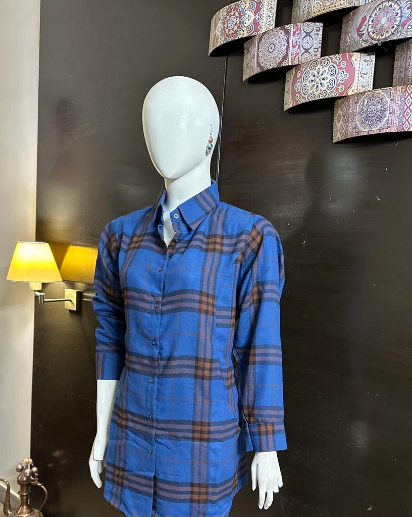 Single Shirts Febric Woollen Check Long Casual Shirts
