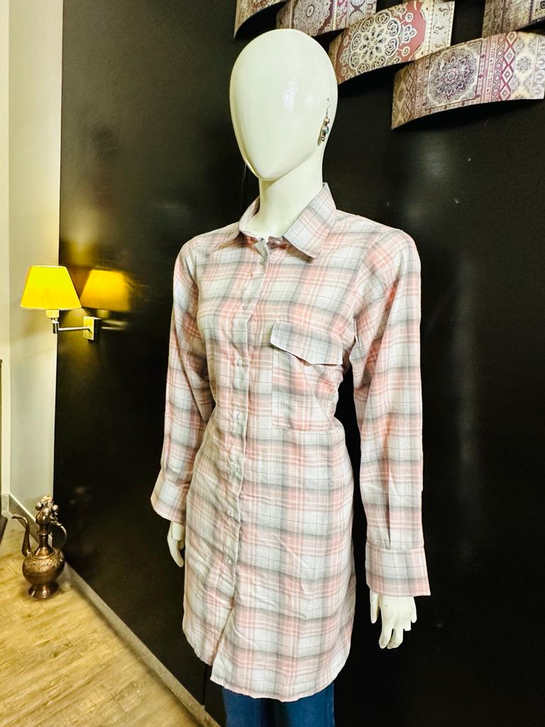 Single Shirts Febric Woollen Check Long Casual Shirts